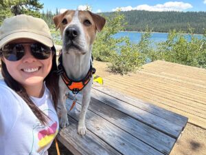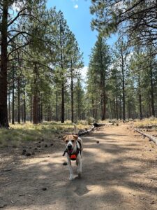 We drove along the Cascade Lakes National Scenic Byway back towards Bend, but just before entering the town, we made a stop at a large off-leash dog area called Good Dog! The place was mostly empty, with only a few other fellow walkers and their dogs. After parking, we set out to explore the Rimrock Trail, a paved dirt trail where dogs can roam off-leash. However, there wasn’t much shade, and it was quite hot, given we were here in August. I would recommend bringing a hat, sunscreen, and plenty of water for both yourself and your pup! Since the trail is quite lengthy, we only walked for about 30 minutes before deciding to head back due to the increasing heat.